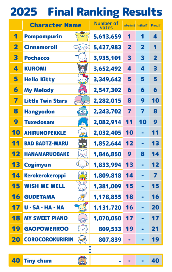 For Reference- Final Results of the 2025 Sanrio character ranking