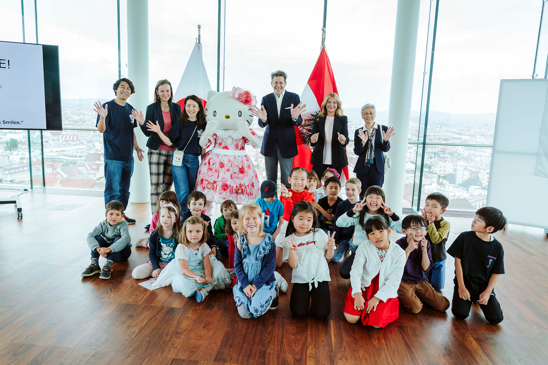 In 2024, Sanrio GmbH collaborated with the Austrian Federal Economic Chamber (WKO) to create opportunities for local kindergarten children and children from the Japanese International School to interact and deepen their connections. The program included teaching the children about what Sanrio does and watching a video about climate change that we had produced with the United Nations Development Programme.