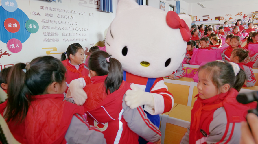 Sanrio Shanghai has been providing character goods to elementary school children in impoverished areas since 2023. Heartwarming experiences were created at elementary schools with Hello Kitty handing out scarves, gloves, slippers, and pocket warmers to help the children stay warm in winter.