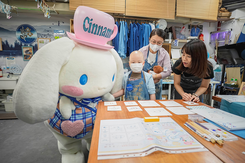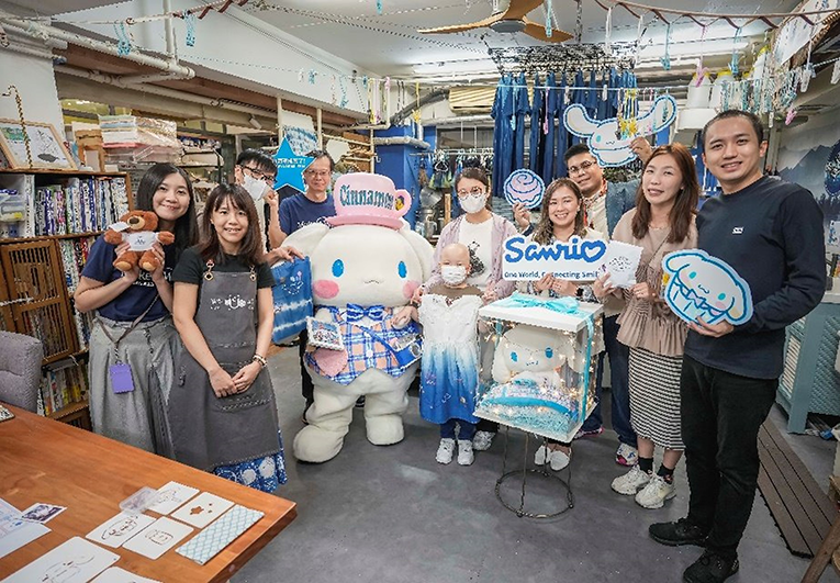 In 2023, Sanrio Hong Kong joined Make-A-Wish Hong Kong to fulfill the dream of a child with leukemia who wished to meet Cinnamoroll. The day was unforgettable for everyone involved as Cinnamoroll made a surprise appearance to give the child gifts and teach a DIY workshop. Sanrio Hong Kong was honored to receive a certificate of appreciation from Make-A-Wish Hong Kong.